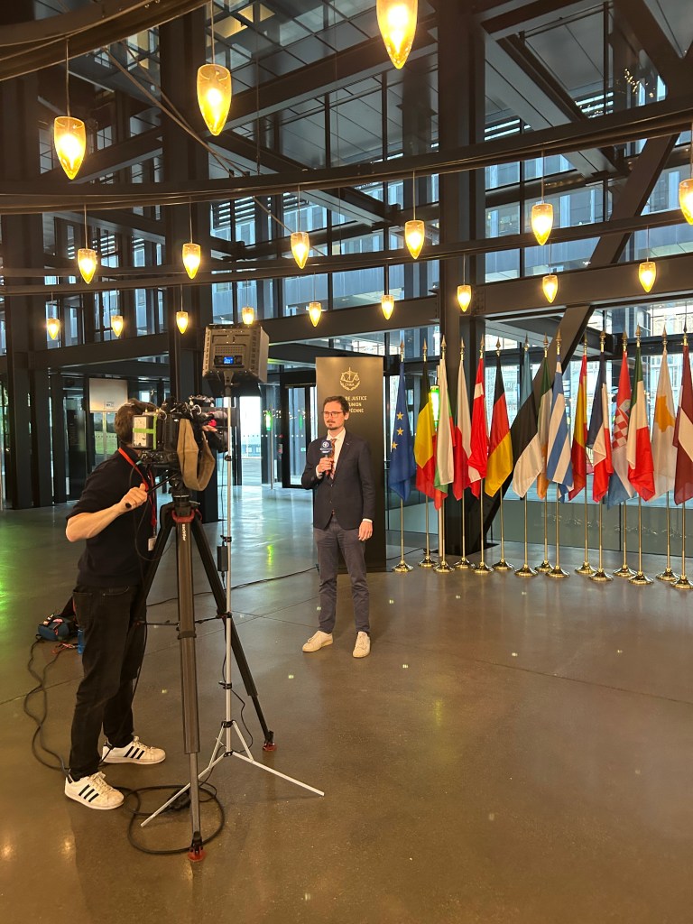 Als Crossmedialer-Reporter berichte ich unter anderem im Fernsehen. Seit einigen laufen Beiträge von mir etwa in der Tagesschau, in den Tagesthemen und verschiedenen Landessendungen, etwa vom WDR und SWR. Dazu zählen Reportagen, Nachrichtenstücke und Live-Schalten. Teils bin ich als Studio-Gast im Studio, etwa in der WDR-Lokalzeit oder bei „Kaffee oder Tee“ im SWR-Fernsehen. Häufig sortiere ich rechtliche Themen ein, etwa für die ARD-Rechtsredaktion aus Karlsruhe. Dann erkläre ich etwa Urteile des Bundesverfassungsgerichts, des Bundesgerichtshofs oder des Europäischen Gerichtshofs. Bunte Geschichten und tagesaktuelle Berichterstattung gehören aber ebenso zu meinen Tätigkeitsfeldern..